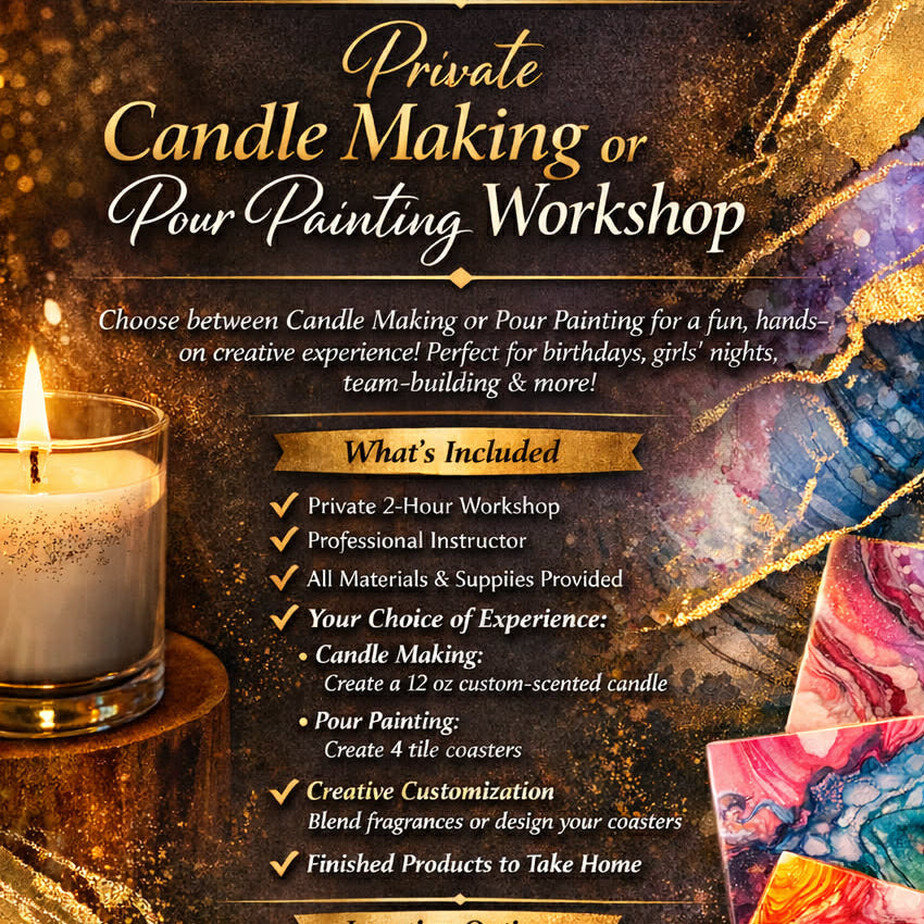 Schedule your private candle making or pour painting event today.
